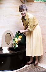 このトイレには排泄物はもちろん台所の生ゴミをすべて捨てる事ができます。そしてこのトイレから取り出された堆肥は、その後の堆肥化期間を要さず、そのまま園芸用に使用することができます。 |